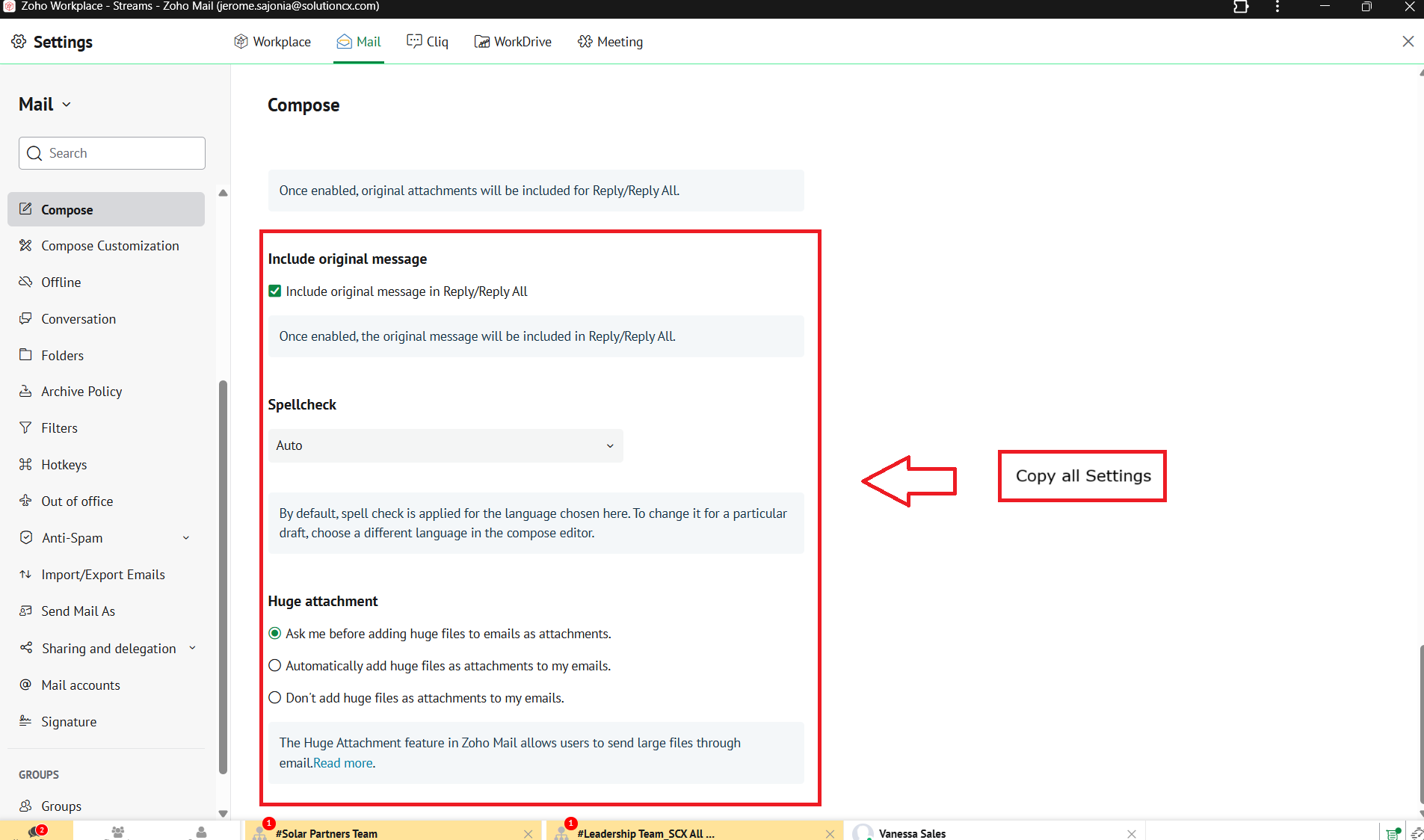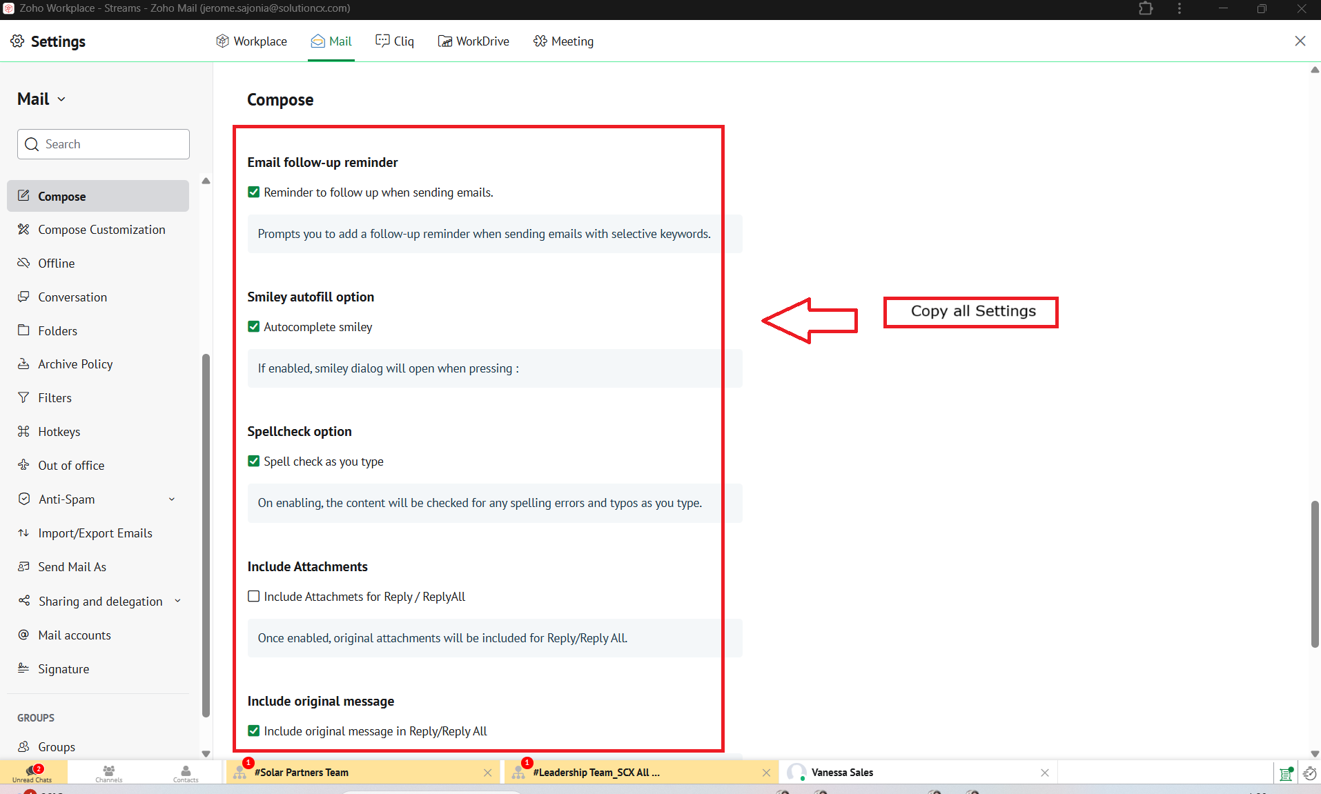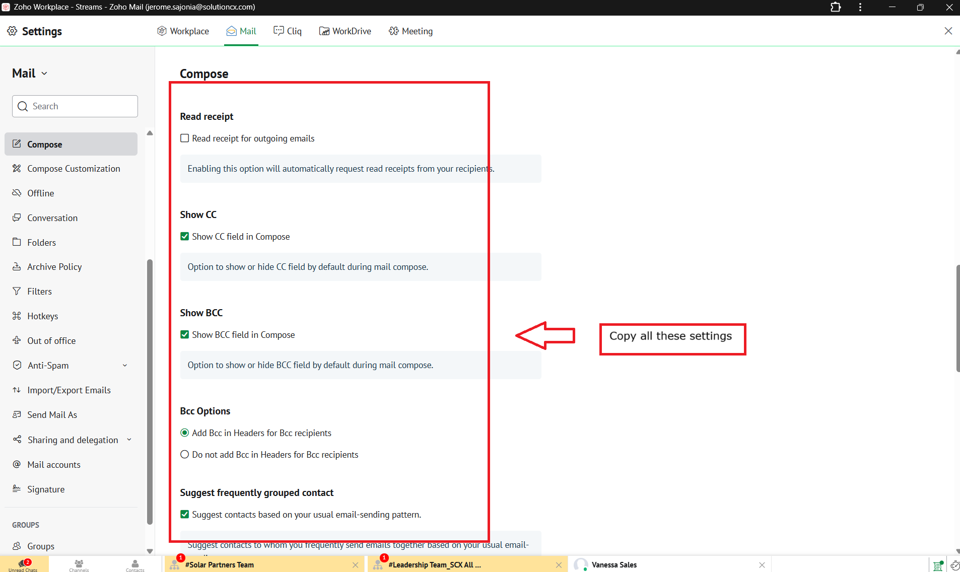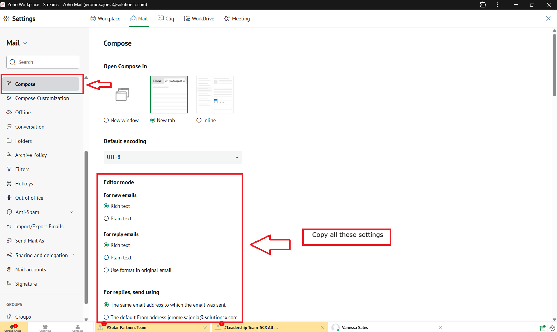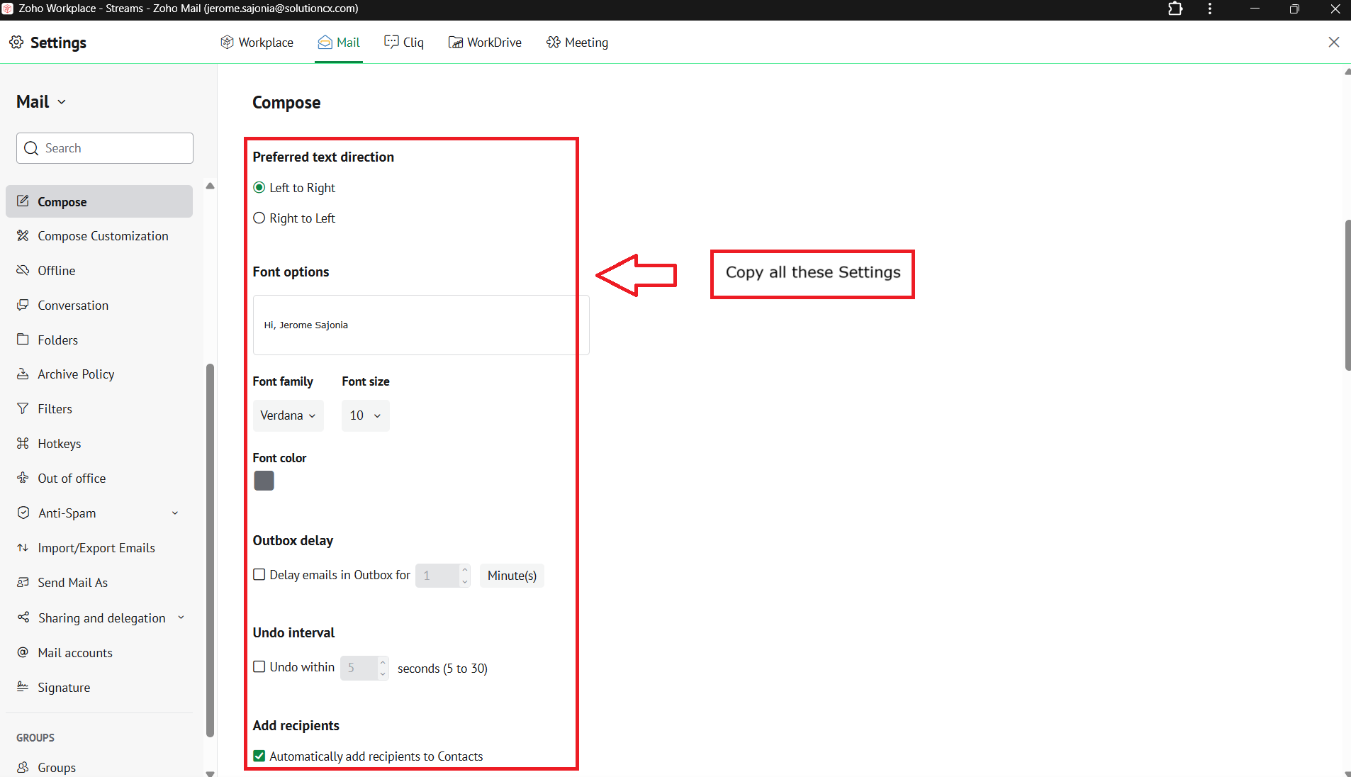 - Back to Mail settings, go to COMPOSE TAB and Copy all setting on the image below.
